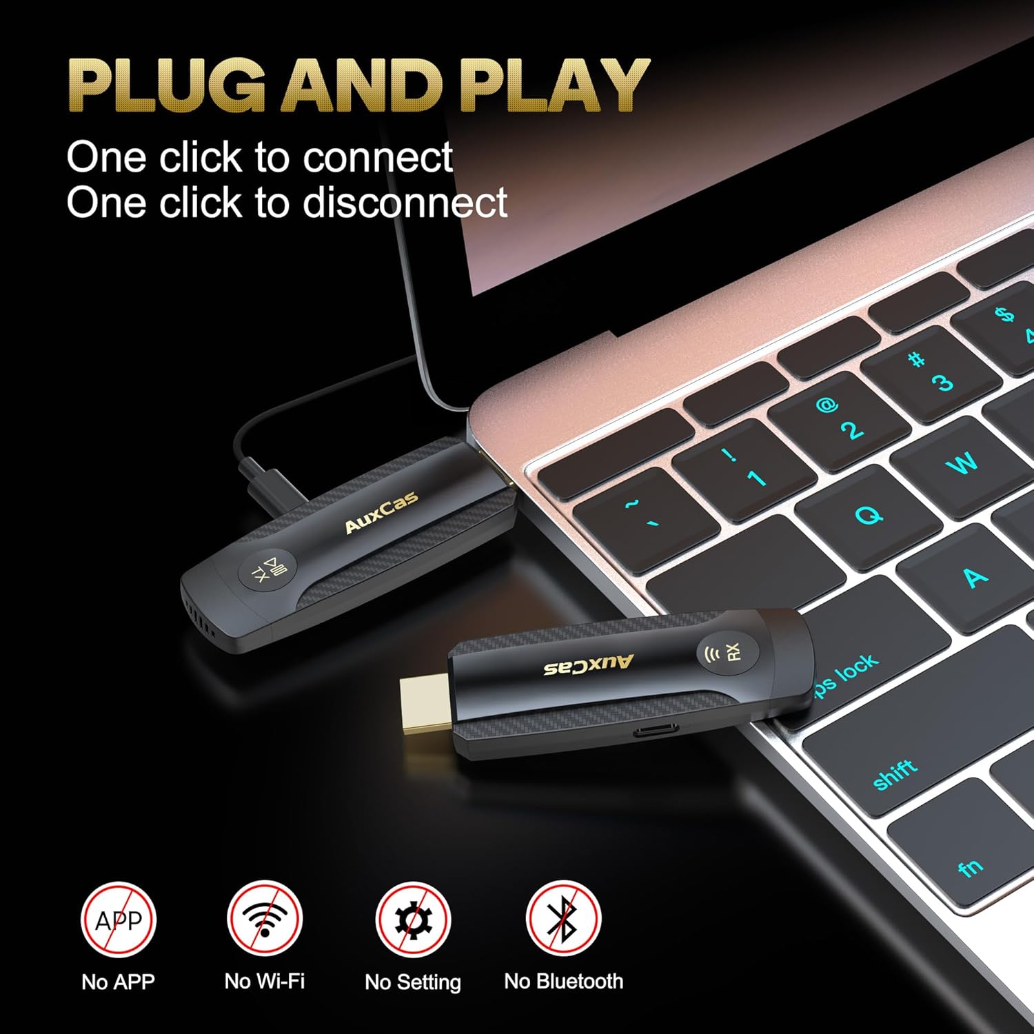 Plug & Play, One-Click Connect/Disconnect for Privacy Protection: No app, no Wi-Fi, and no Bluetooth required—just plug & play video games! The wireless hdmi adapter for tv is incredibly easy to use, allowing you to control your connection with a single press.The wireless video transmitter features one-click connect/disconnect, simplifying operation and ensuring privacy protection, giving you peace of mind with every use.