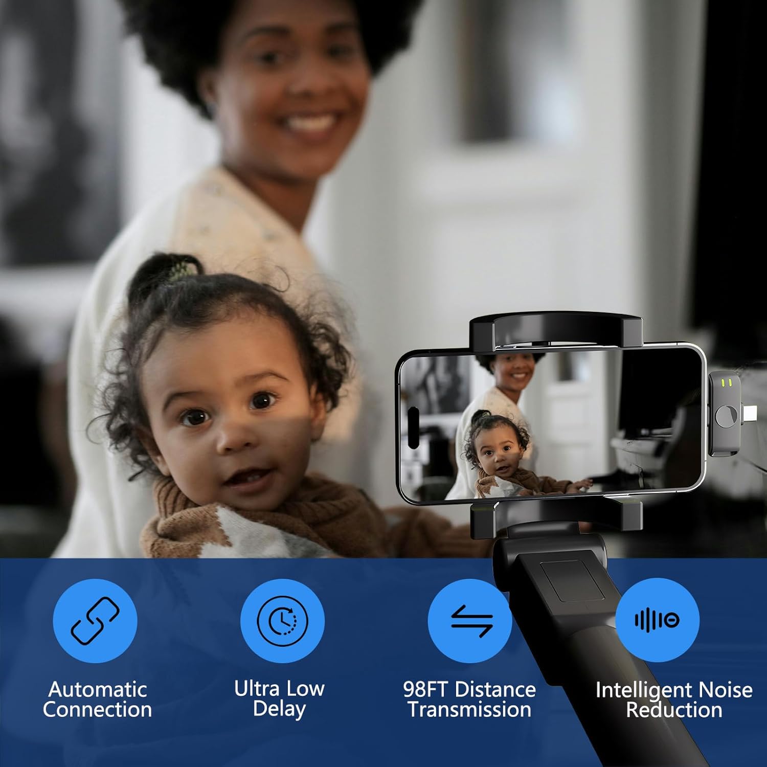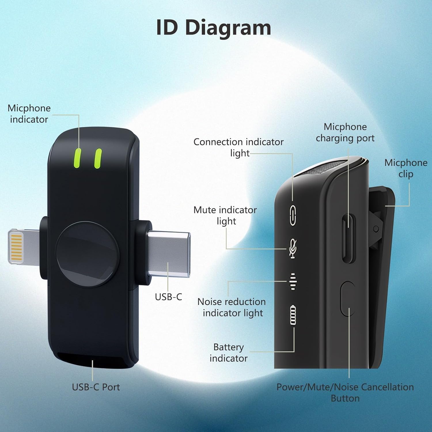 2 in 1 Universal Receiver and 2 Microphones: New upgraded 2 in 1 universal receiver with USB-C/Lighting port, it is compatible with iPhone/iPad/Android Phone/Computer/Laptop/MacBook, etc. The receiver can connect two microphones at the same time, of course, it can also connect a microphone alone.