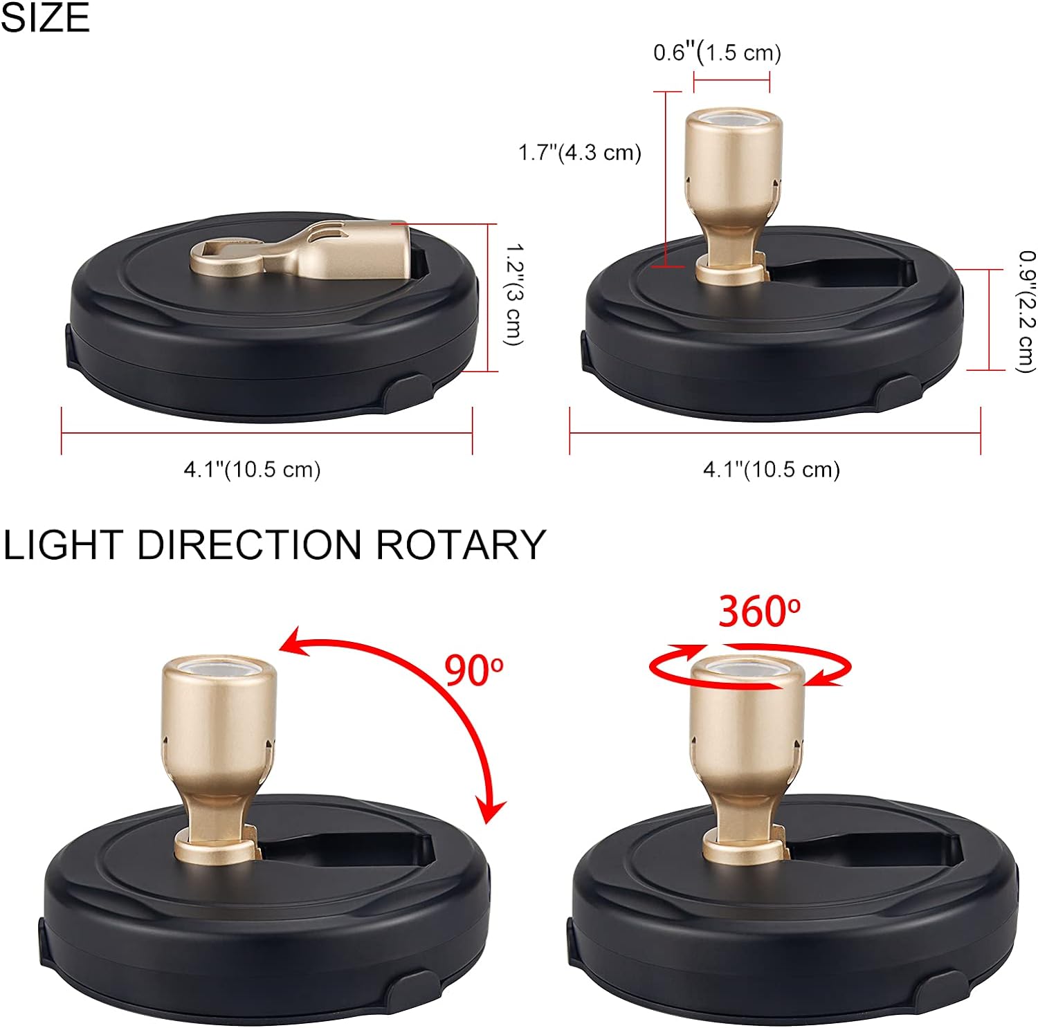 Multi Directional Lighting Head: LED spot lights head can swivel up and down 90°, left to right 350°, almost any direction you need it (each product dimensions: 4.1″L x 4.1″W x 2.6″H)