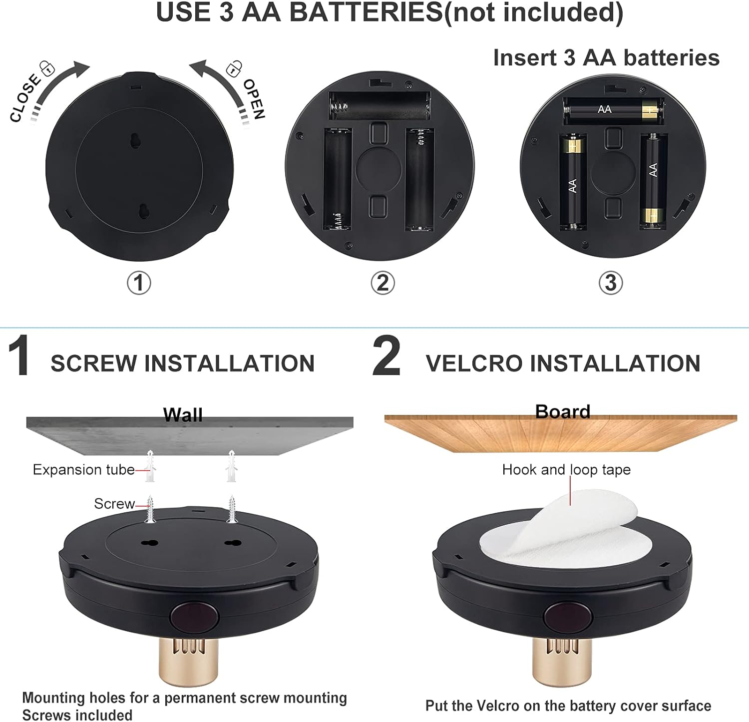 Simple to Install: Easy to install puck lights with provided hook and loop tape or screws. Can use indoor anywhere like hallway, kitchen, cabinet, closet, basement, hutch, pantry, wardrobe, bookcase, shelf, jewelry display, decorative shelf or highlight Christmas decorations, art display, painting, picture, wall photograph, artwork, statue, model, dartboard, portraits, plants