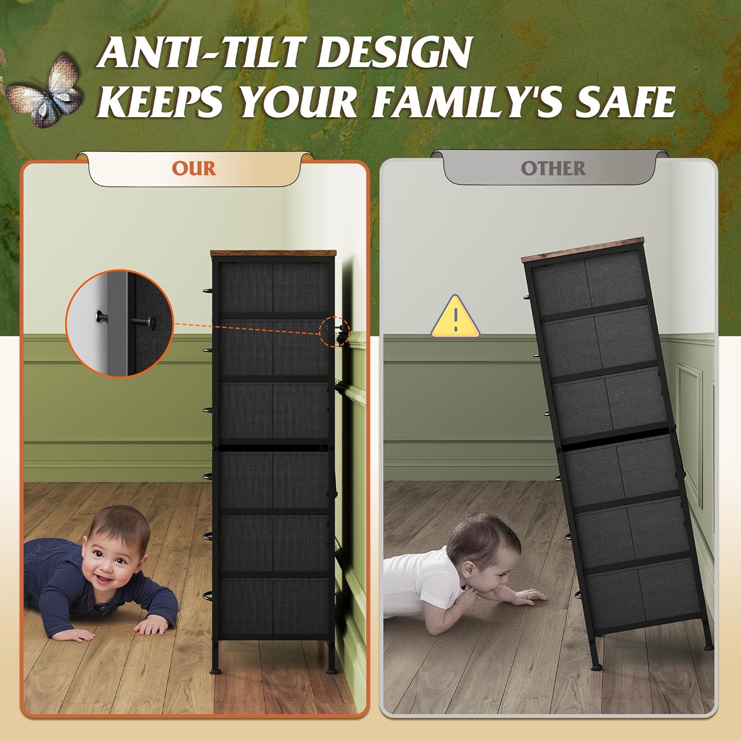 【✨ Stable Structure Safety Assured】This dressers designed with 15mm thickened metal steel frame with cross support rods for durability. Additional anti-tilt device can easily fix the cabinet to the wall, ensuring the safety of you, your family and pets, and enjoying a convenient life!