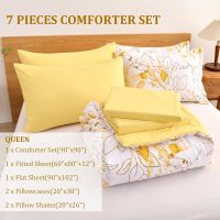 [7 PIECES BED IN A BAG]: Yellow comforter set include 7 Pieces: 1 comforter set(90”x90”)+2 pillow shams(20”x26”)+2 pillowcases(20”x30”)+1 fitted sheet(60”x80”+12″)+1 flat sheet(90”x102”)