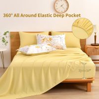 The yellow fitted sheet is designed with around 360° elastic rubber to ensure a perfect fit on your bed.