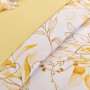This 7 pieces yellow comforter set adopts blossom plum print design, which is more fashionable and decorative. This comforter set has a reversible design. The A version is designed with reversible design yellow and gold leaf printed plant, giving a beautiful and fresh feeling, and the B version is fresh and fashionable yellow. Soft color combinations to make your bed look more luxurious.This botanial comforter is made of ultre soft microfiber material, which is skin-friendly and comfortable, delicate and breathable.