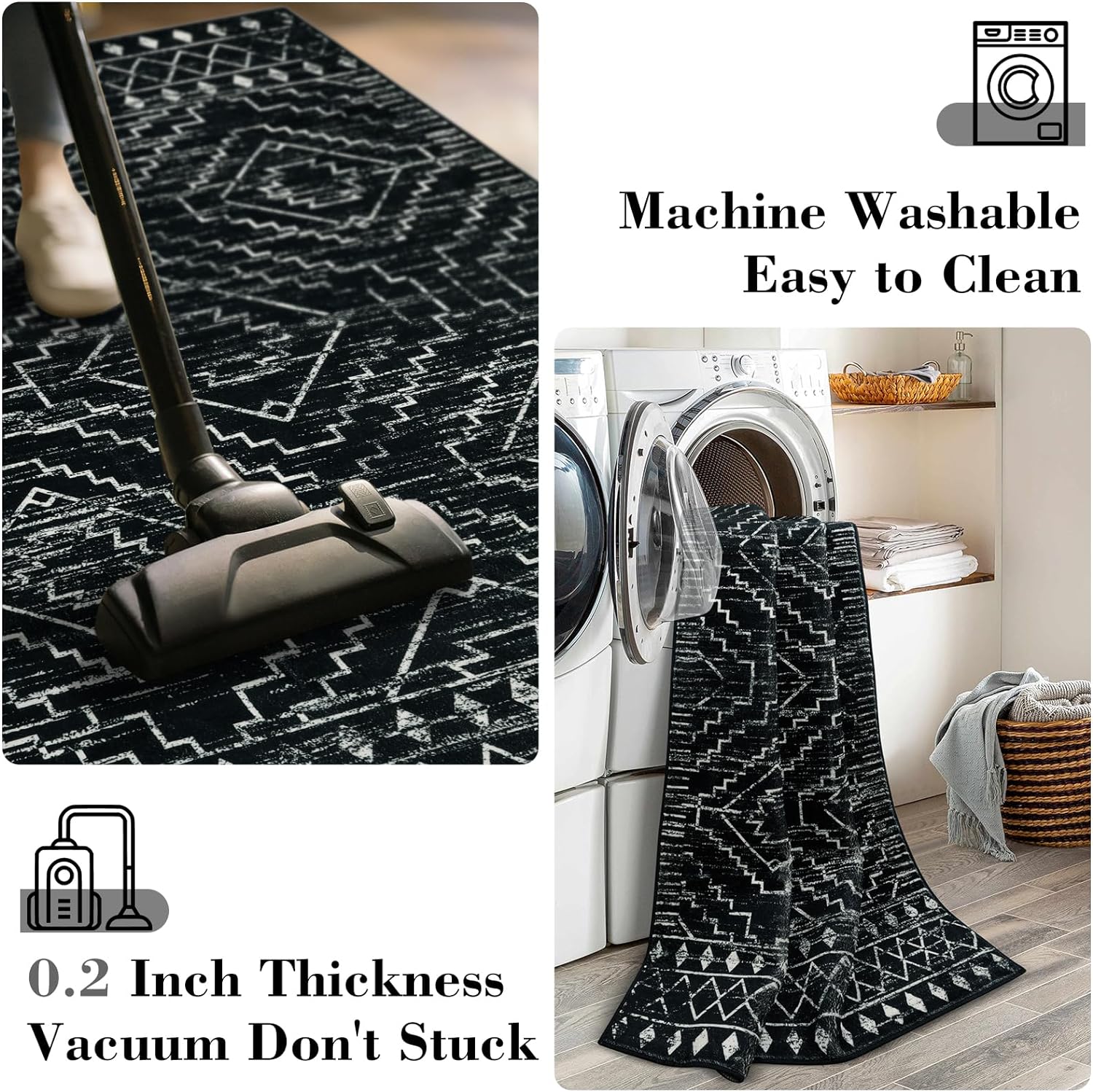 【Pet Friendly】: A modern rug that can survive those little accidents, pet odours and regular thorough vacuuming; Polyster machine washable rug is designed to stand up to the elements,it’ll be easier to wash off the dirt