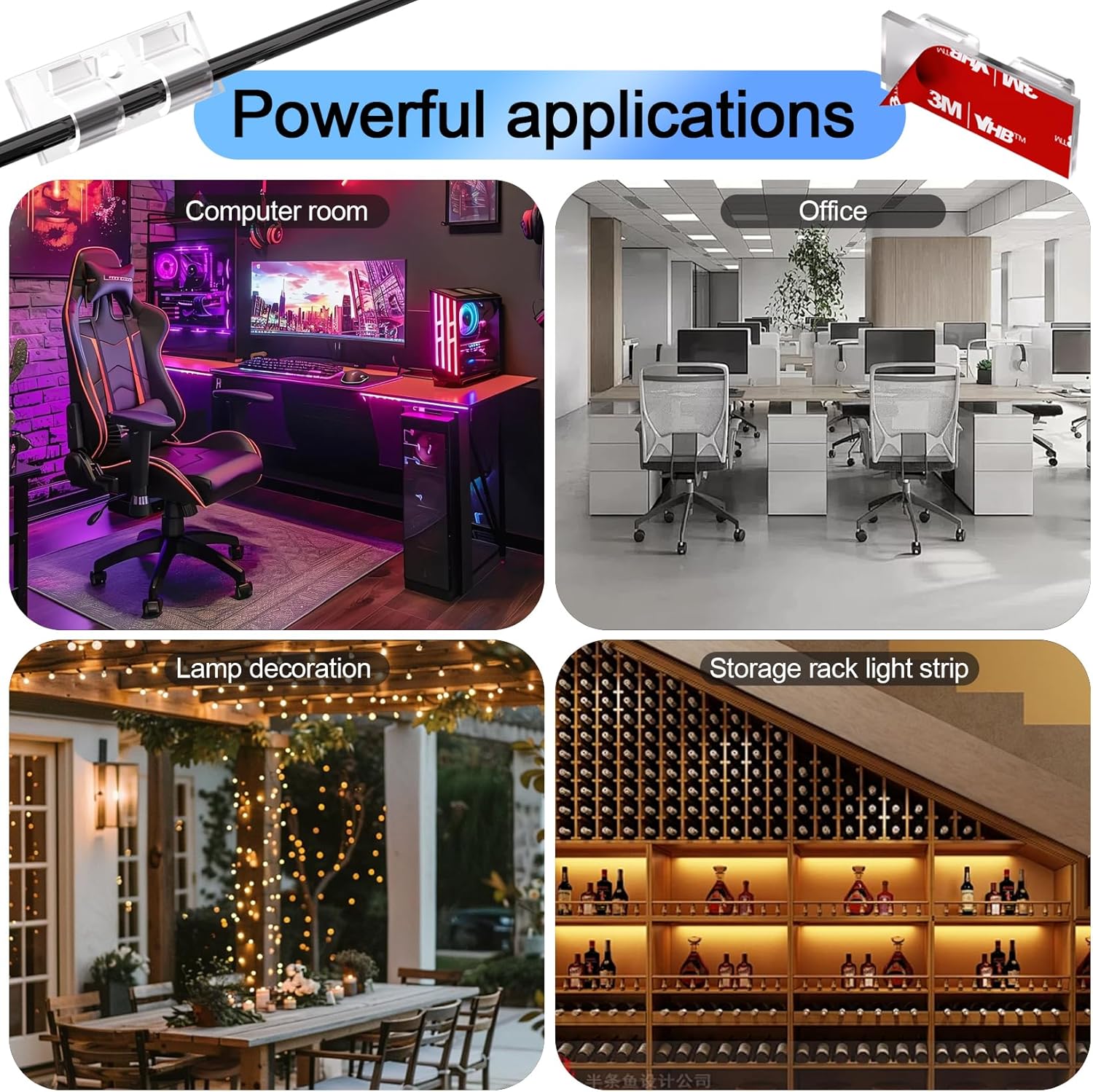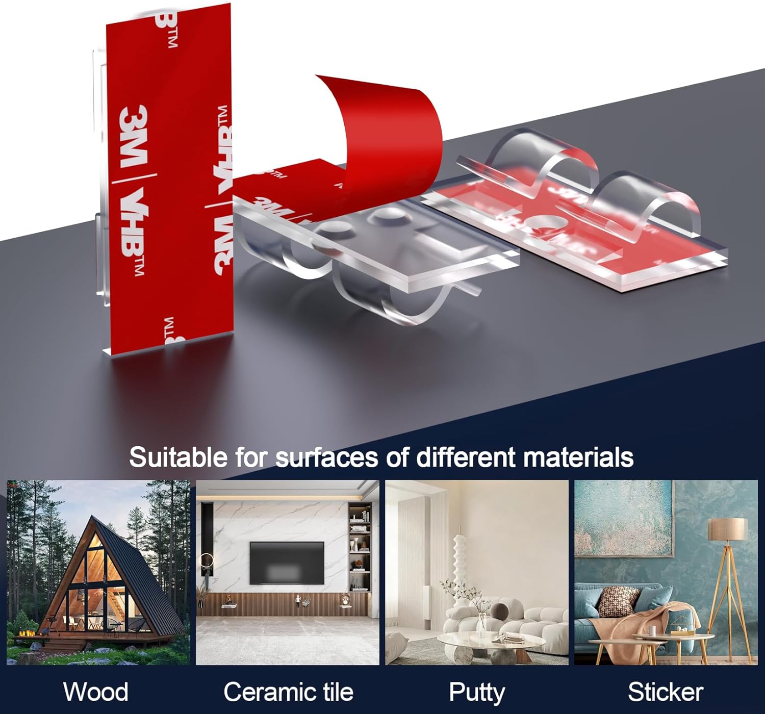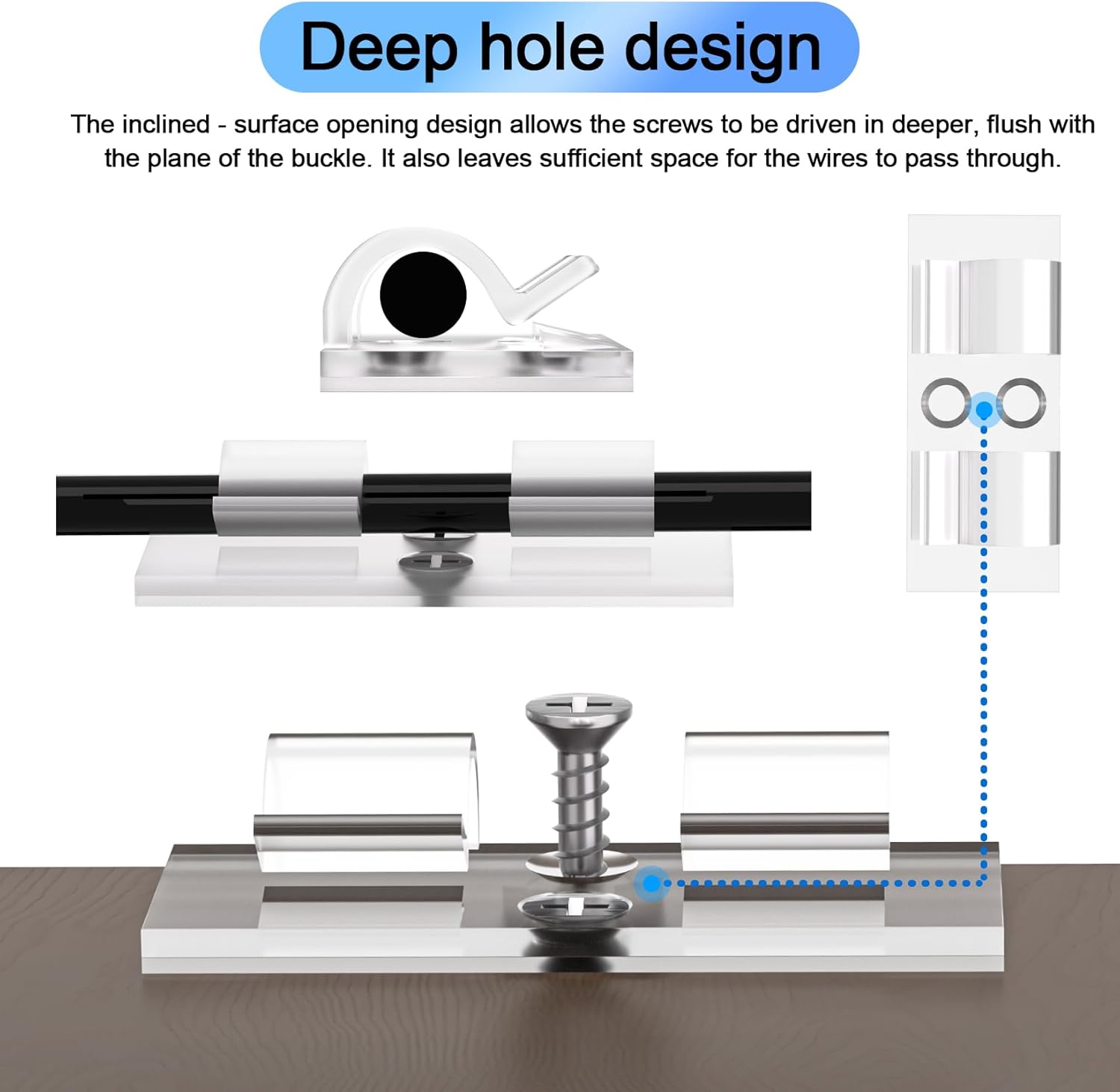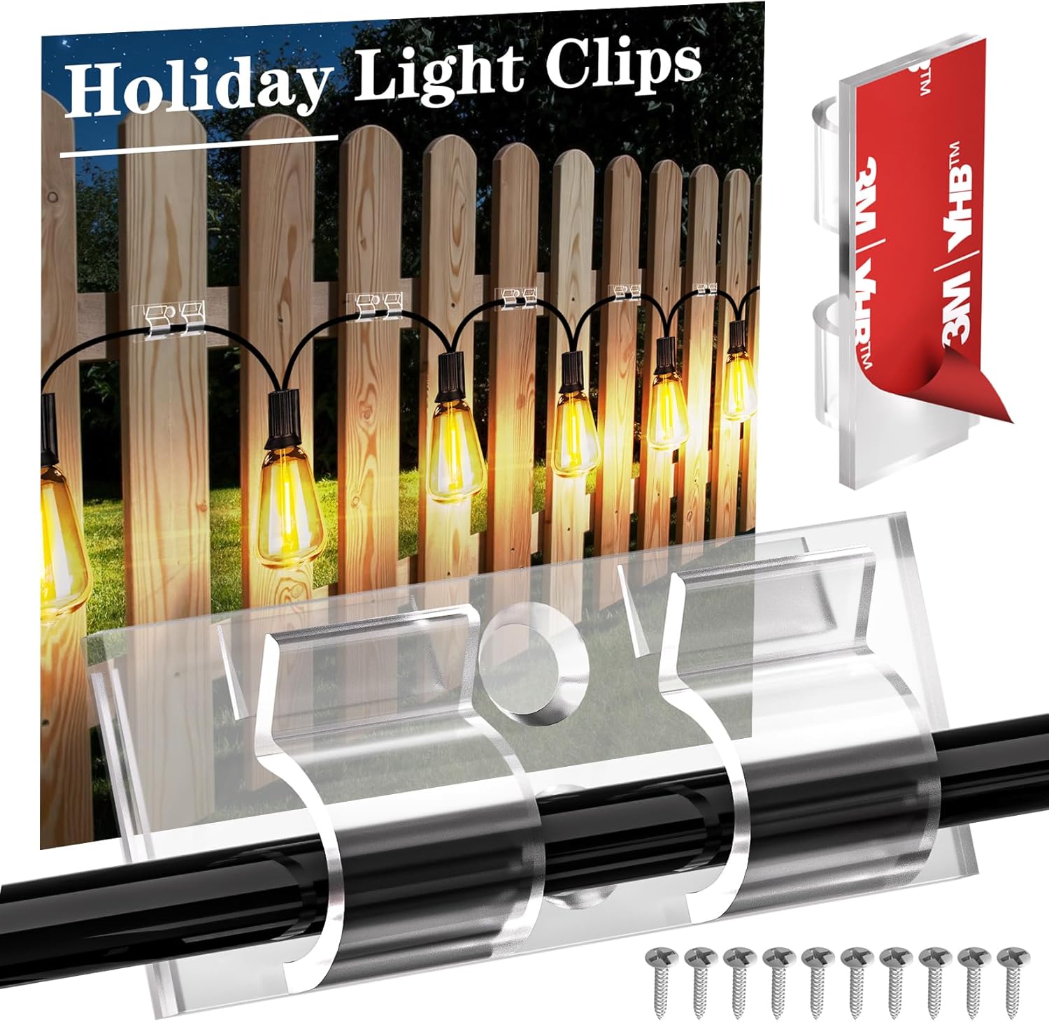 XHF 30PCS Clear Hooks for Outdoor String Lights Clips, Heavy Duty Adhesive wih Holes and Screws, for Hanging Christmas Lighting