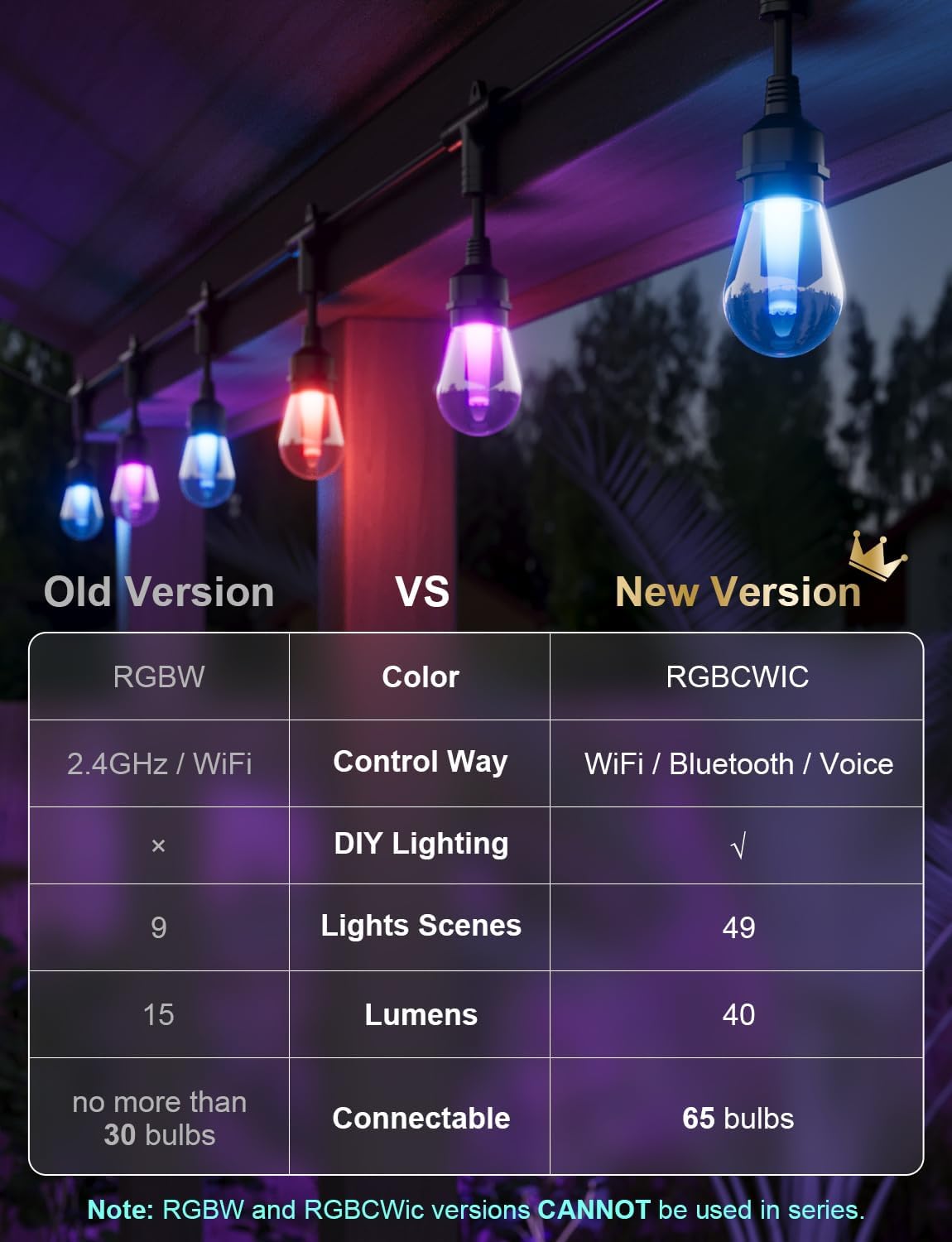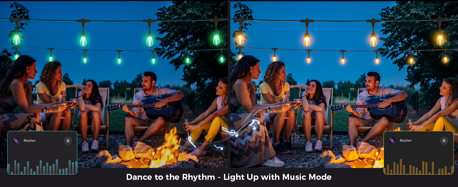 Hassle-free Group Control: Manage multiple sets of led patio string lights as a single unit to sync the same series of lights across locations with one touch; and you can also easily control the same set of string lights with your family or friends
