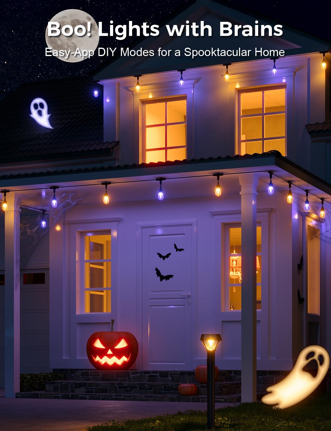 RGBCWIC Lighting Effects: DIY each LED bulb with millions of color options. Adjust white tones from 2700K warm glow to 6500K cool light, and enjoy dimmable brightness from 1-100% for the perfect static lighting. Ideal smart outdoor lights for decor.