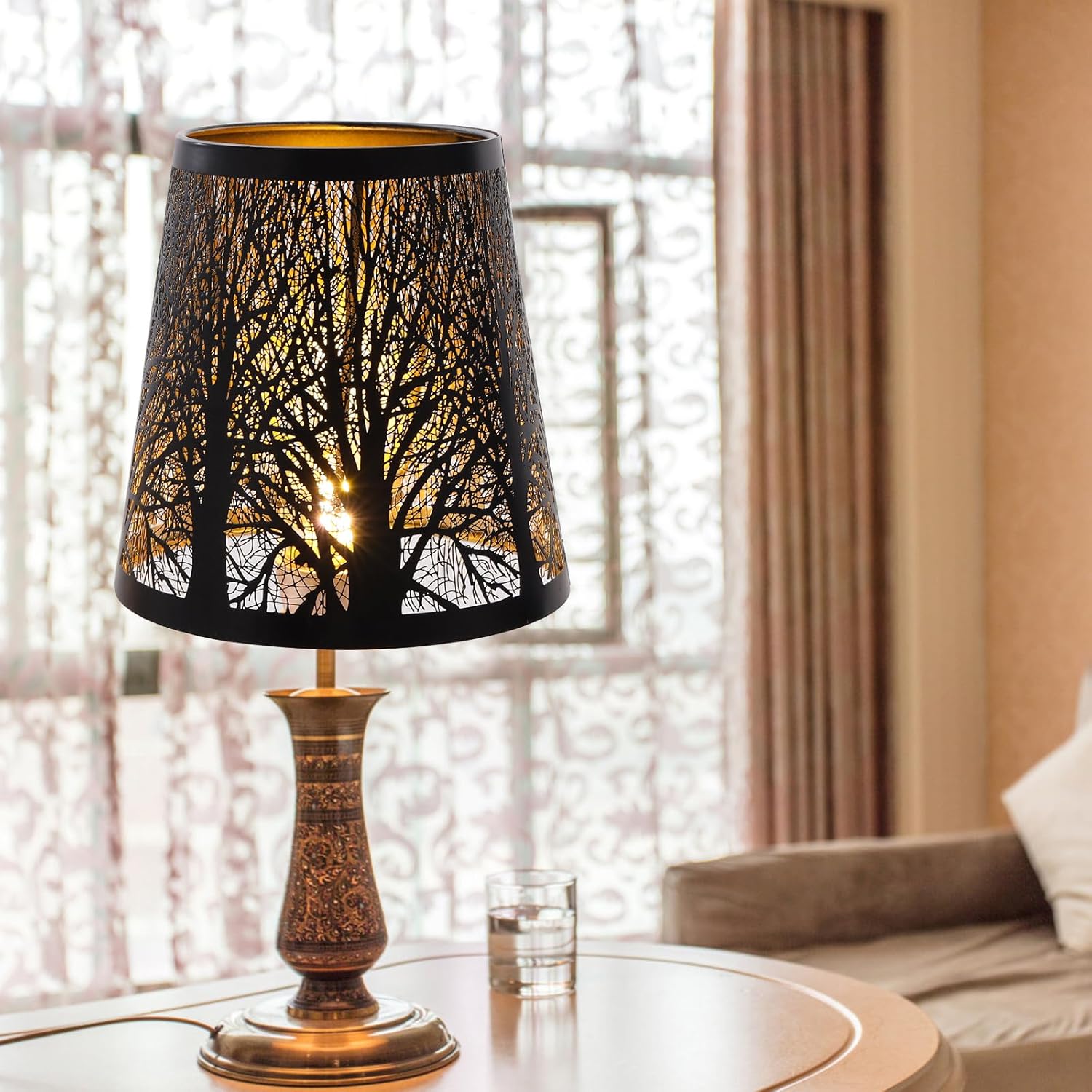 Unique Design: Brand new color, tree pattern design, This newly designed lampshade brings a romantic, natural, soft, and warm ambiance to your room