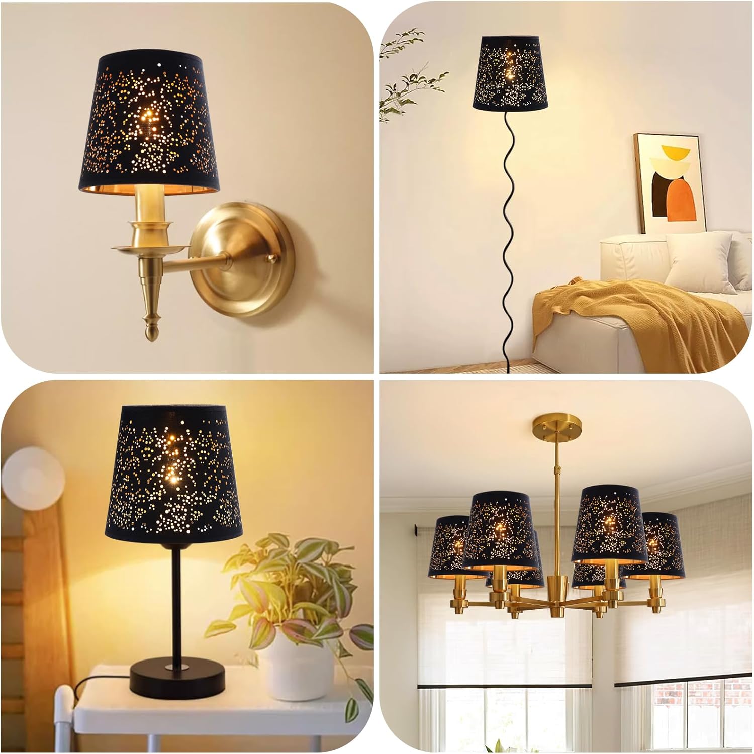 EASY TO USE: This is a mini lampshade for clip-on bulbs for pointed bulbs in any lamp holder. The lamp shade effectively achieves a concentrating effect, creating a romantic and warm atmosphere that is not dazzling, complements interior decor.
