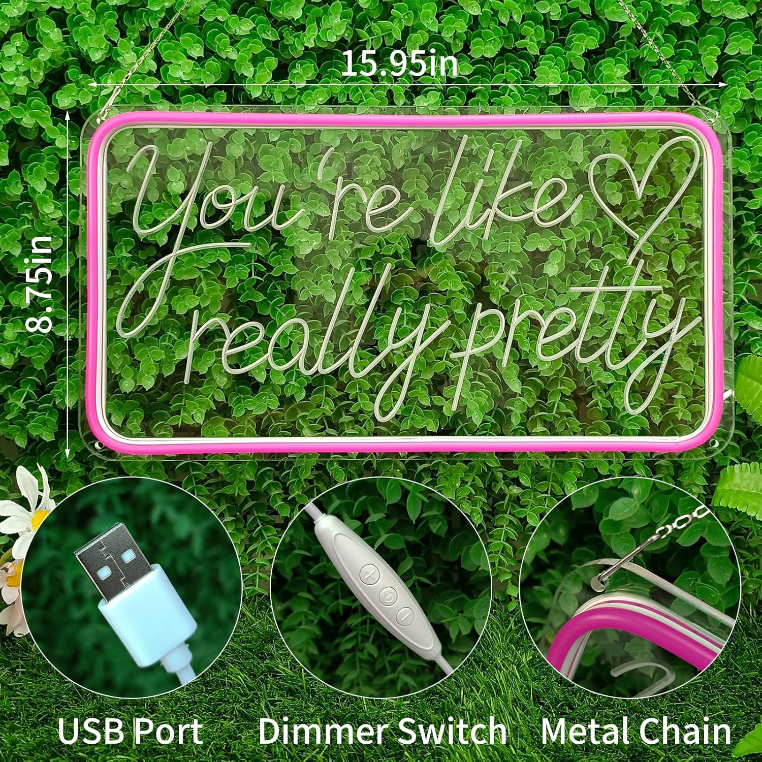 【Wide Application】You are like really pretty neon sign is very suitable for your party, indoor wall decoration. Pink neon sign for bedroom nightstand decor, also can be used for home bar, salon,teen girl pink room, wedding,valentine’s day decoration, And as cool love gift for wife, friends, colleagues, girls