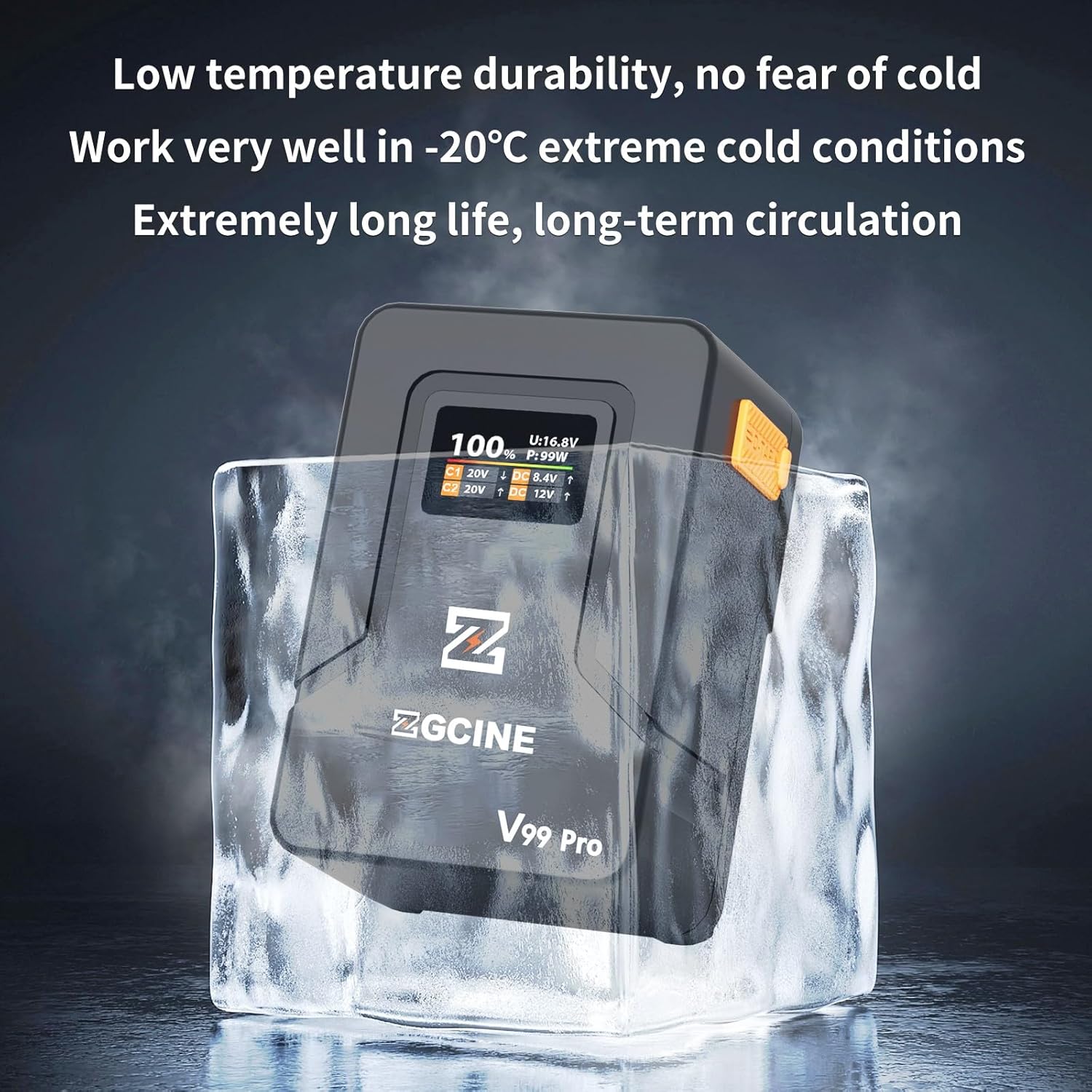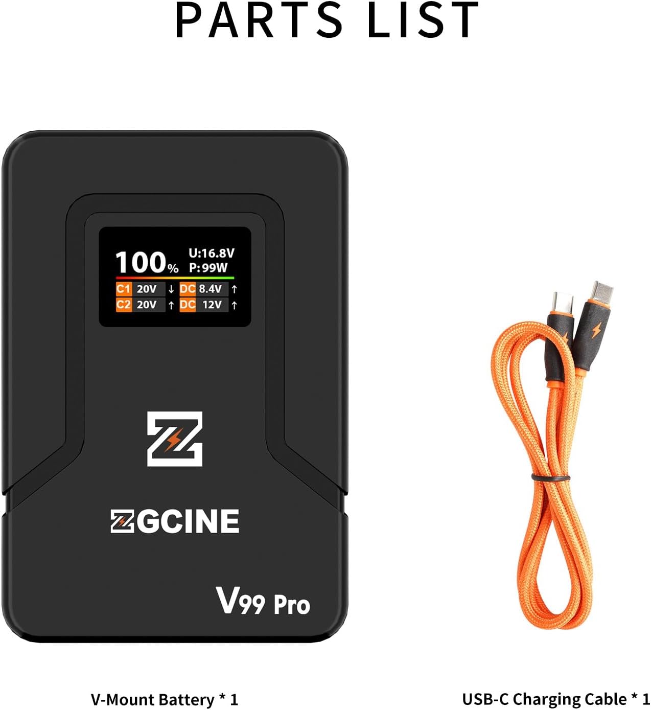 Unleash the full potential of your gear with the ZGCINE ZG-V99 Pro V-Mount Battery – the professional-grade power solution built for speed and endurance. Featuring PD100W fast-charging technology, this 99Wh battery achieves a full charge in just 1.5 hours (requires a compatible PD100W charger, sold separately), ensuring you’re always ready to capture the shot.